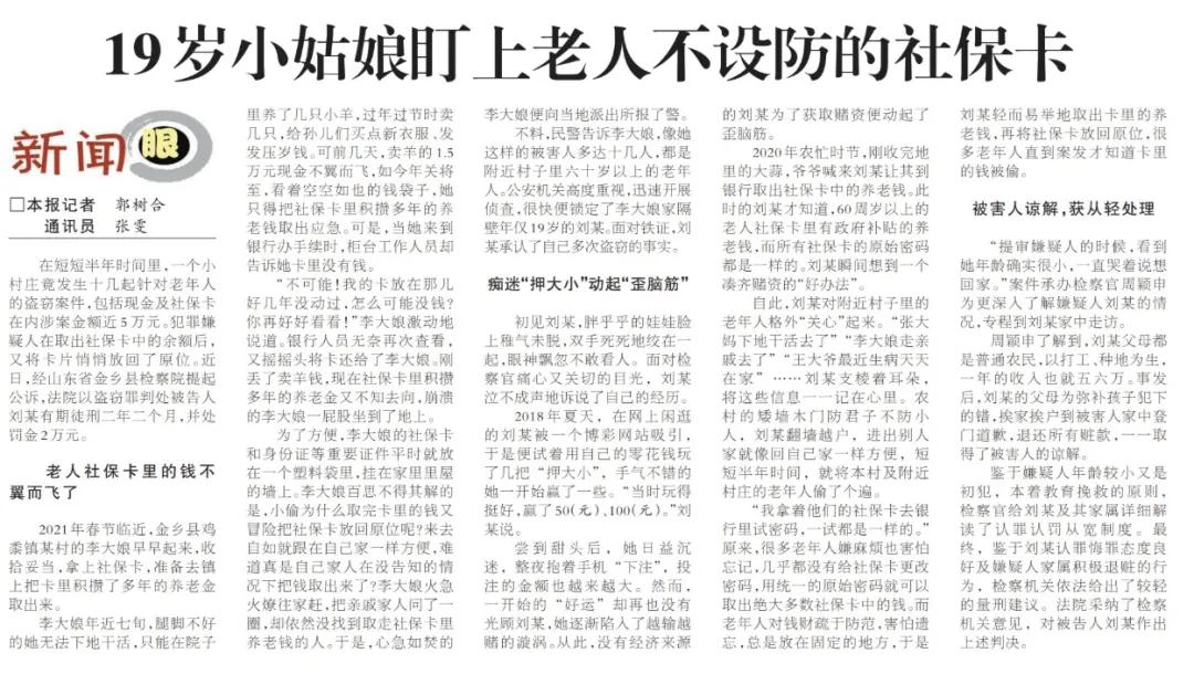 案件播报 | 19岁小姑娘盯上老人不设防的社保卡