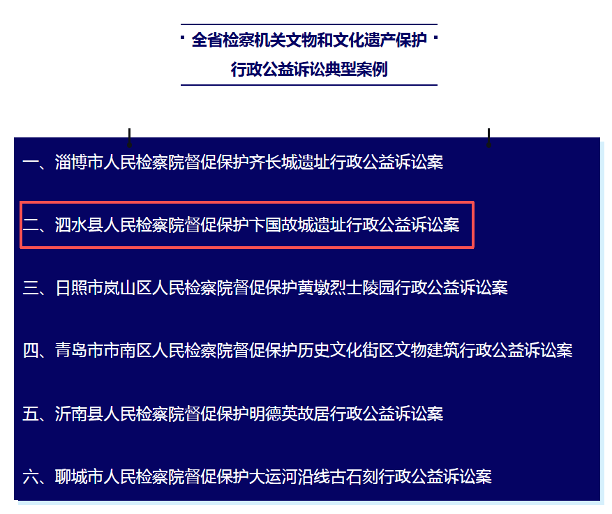 此次发布会,省检察院同时发布了6件全省检察机关文物和文化遗产保护行政公益诉讼典型案例。泗水县检察院督促保护卞国故城遗址行政公益诉讼案成功入选。